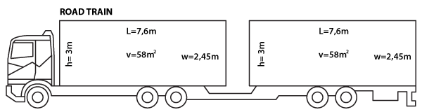 120 m3 mahtuvusega autorongi saab paigutada kokku 76 euroalust. Auto mõõtmed on 7,2 x 2,45 x 2,95m ja haagis 7,2 x 2,45 x 3,05 m. Selliste autorongidega saame pakkuda ka tolli kontrolli all olevaid vedusid (Venemaa).