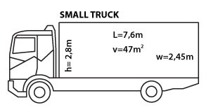Mahutab 47 m3. Maksimaalne kauba kaal 5 tonni. Kasti kõrgus on 2.8 m, laius 2,4 m ja pikkus 7 m. Sellise veokiga pakume transporti Eesti-siseselt.